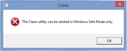 Примечание. Если после запуска утилиты появляется ошибка "The Clean utility can be started in Windows Safe Mode only"? это означает, что утилита запущена не в безопасном режиме Windows.