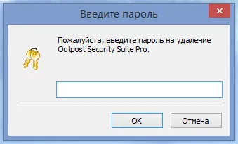 Примечание: Если в настройках Outpost был установлен пароль, то перед удалением вам будет необходимо его ввести: