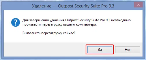 По завершении удаления, вам будет предложено перезагрузить компьютер. Подтвердите это действие: