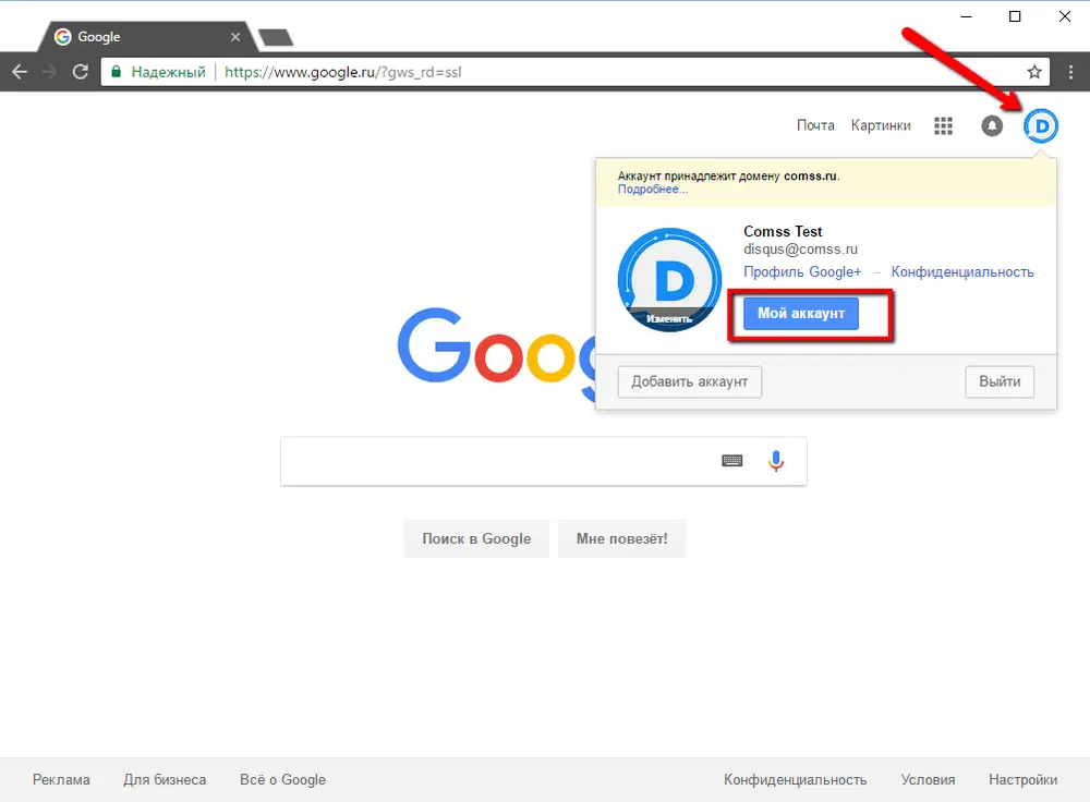 - Нажмите на странице профиля в верхнем правом углу экрана и нажмите по кнопке “Мой аккаунт”.