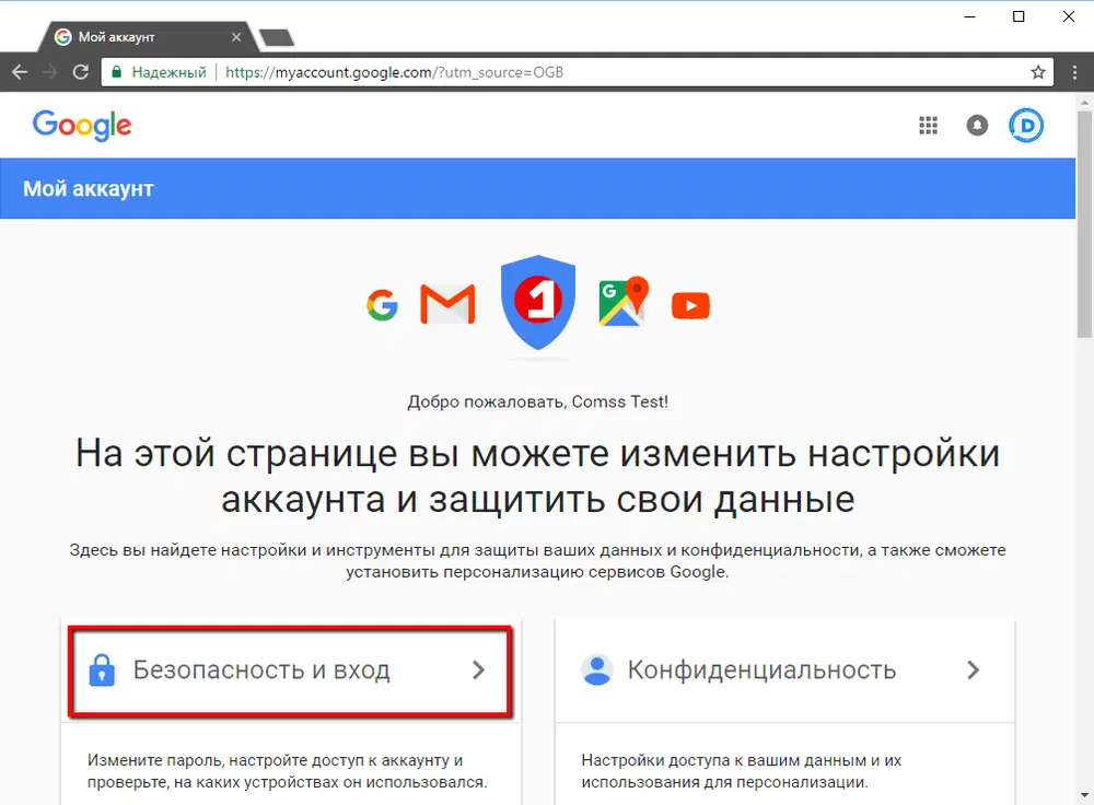 - После того, как страница аккаунта загрузится, выберите страницу “Безопасность и вход”.