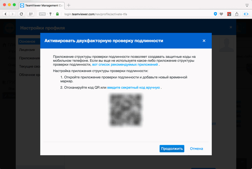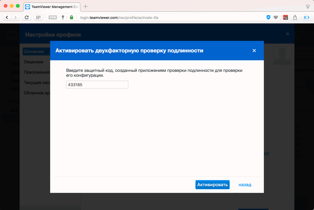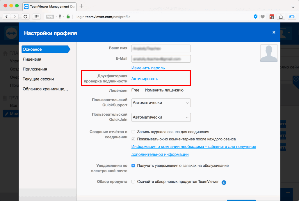 Рассмотрим шаги, которые нужно выполнить для включения двухфакторной аутентификации в TeamViewer: