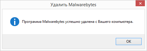 Дождитесь завершения процесса удаления программ Malwarebytes с компьютера.