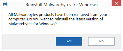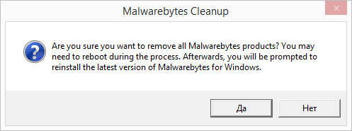 После перезагрузки, вам будет предложено установить новейшую версию программного обеспечения Malwarebytes. Нажмите "Yes" чтобы согласится, или "No" чтобы завершить работу утилиты.
