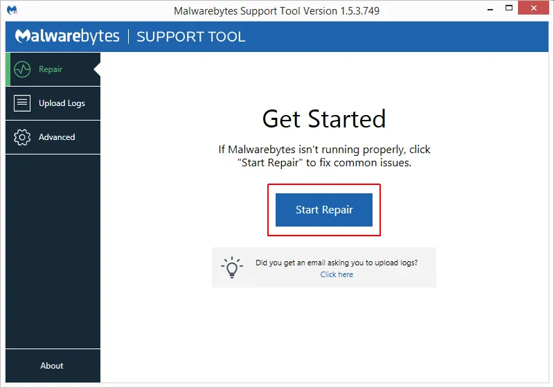 Для восстановления работы программ Malwarebytes, нажмите кнопку "Start Repair".