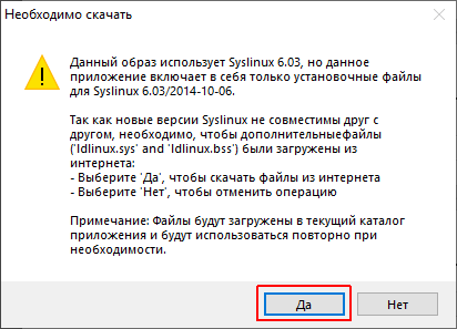 - Убедитесь, что вы выбрали правильное USB-устройство и нажмите Да. Все данные на выбранном диске будут удалены.