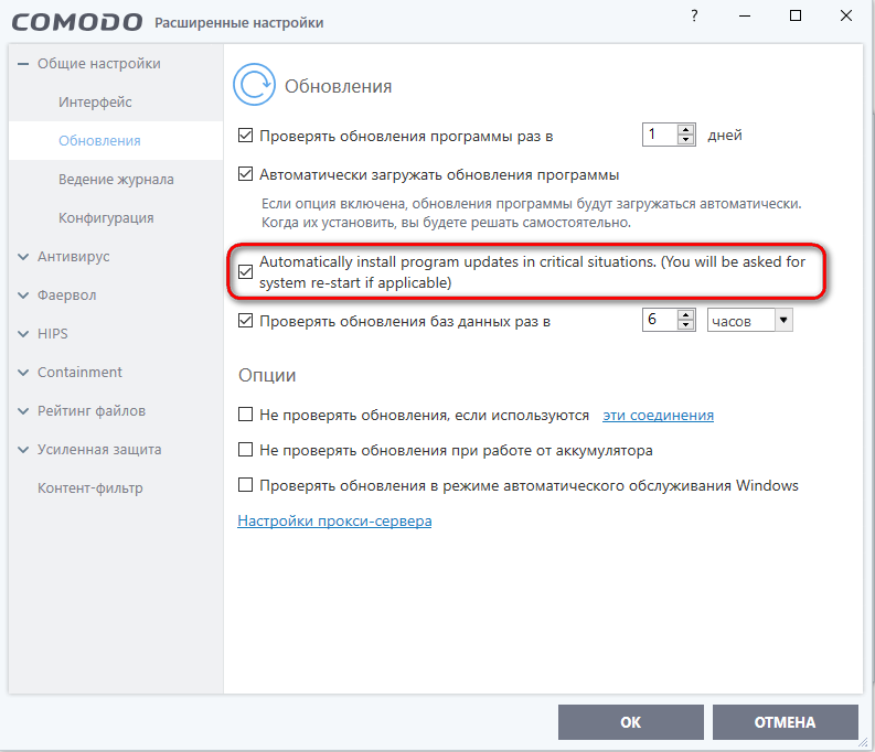 Чтобы поспевать, как заявлено, за обновлениями Windows, разработчики сделали автоматическим обновление программных компонентов CIS — правда, только на критические случаи. Раньше для каждого обновления программы требовалось согласие пользователя. Можно и сейчас отключить эту автоматику.