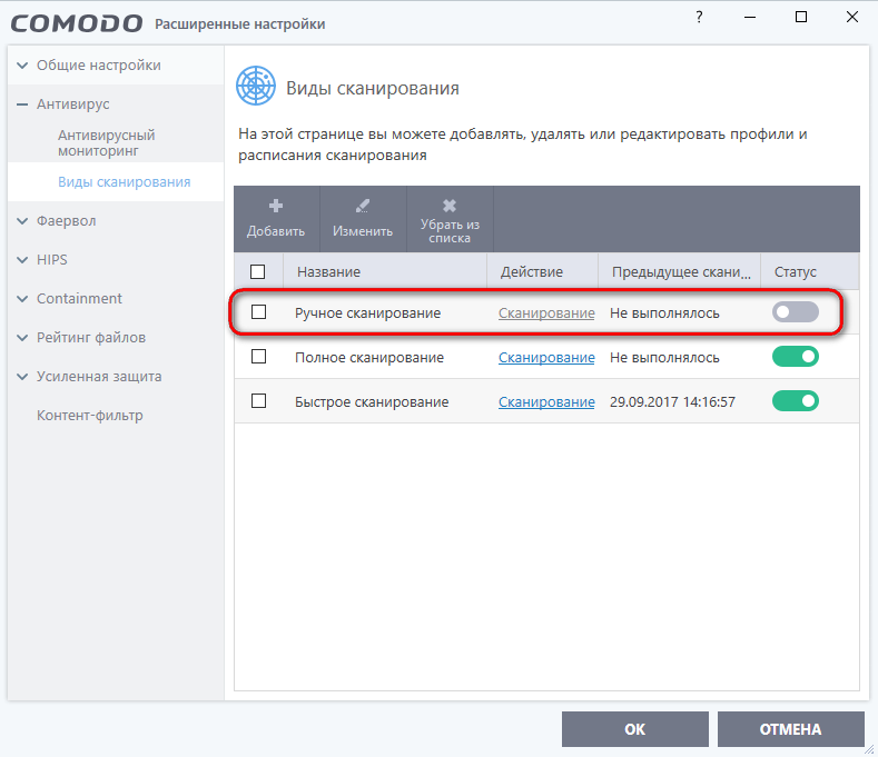 - вручную, запуском «Рейтингового сканирования» (этот вариант доступен также в COMODO Firewall);