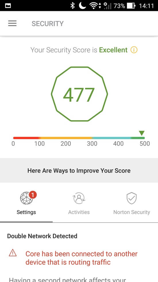 Приложение Norton Core имеет удобный и простой в использовании интерфейс. Разобраться со всеми разделами можно за несколько минут. На одном экране вы не увидите слишком много информации, что упрощает поиск нужных элементов управления.