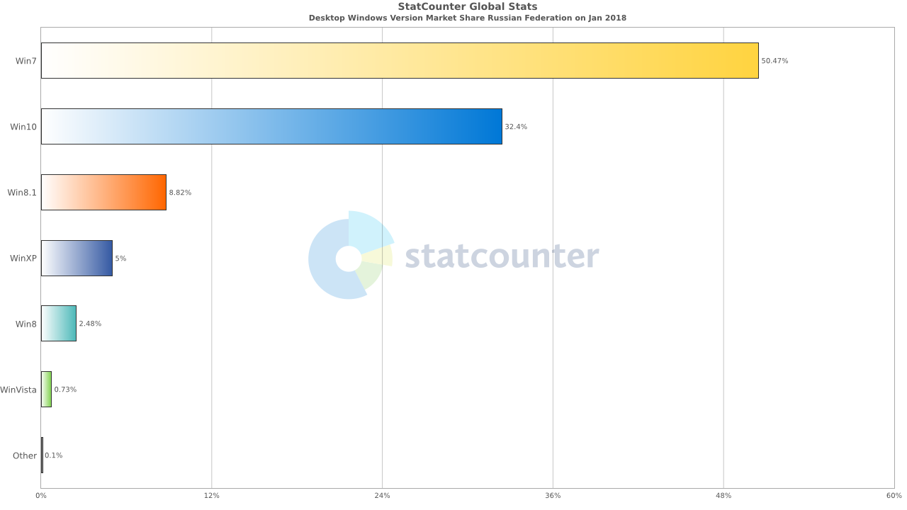 Традиционно в начале каждого месяца аналитические и исследовательские компании публикуют обновленные статистические данные использования операционных систем, чтобы можно было оценить новейшие изменения на рынке. Это первый срез статистики за 2018 год.