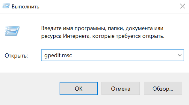Оснастку Редактор объектов групповой политики можно запустить, например, введя в окне Выполнить, либо в поисковой строке gpedit.msc.
