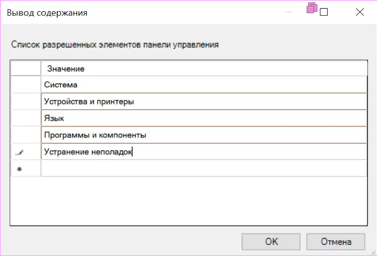 - Ввести имя апплета или апплетов, которые необходимо показывать в Панели управления, и нажать Enter.