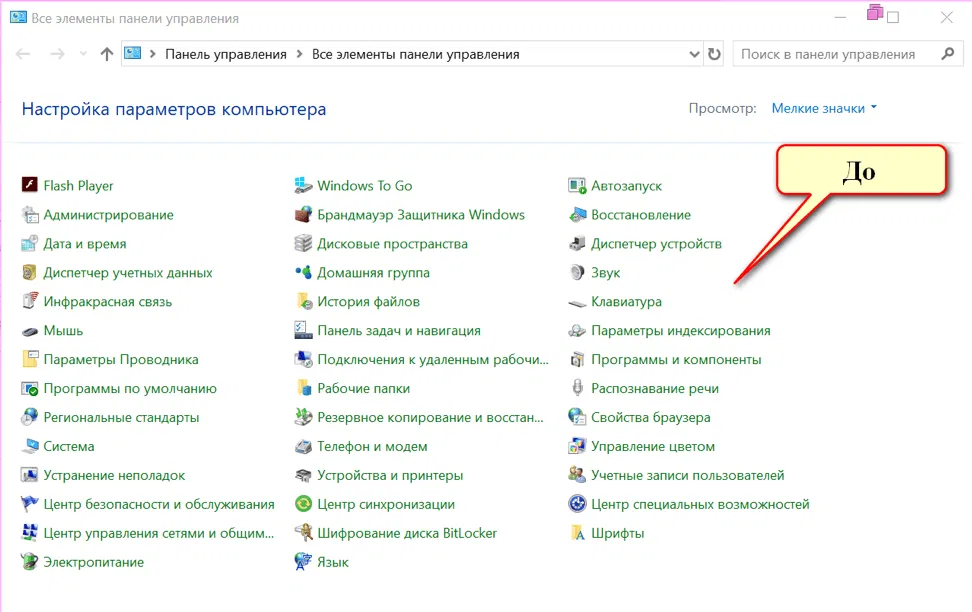 Рис.11 Список элементов панели управления до изменения параметра локальной групповой политики