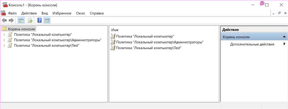 Теперь, используя данную консоль, можно настраивать политики для определенных пользователей.