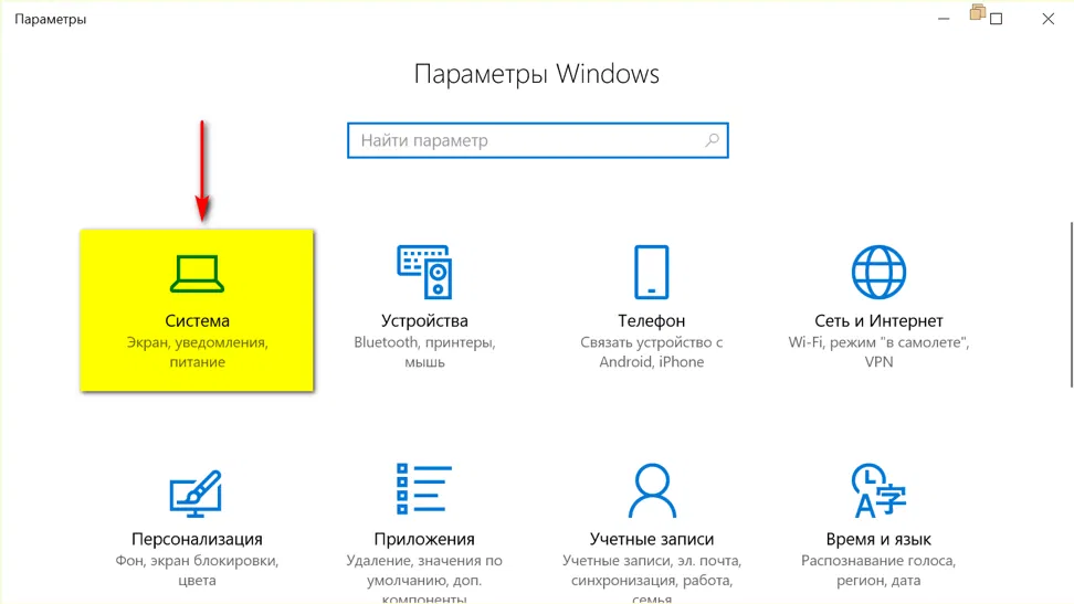 - Открыть Параметры системы