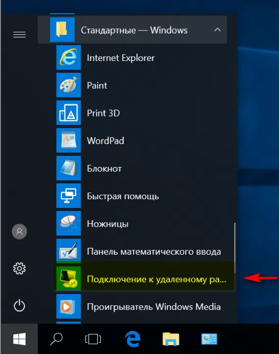 Рис.16 Выбор утилиты Подключение к удаленному рабочему столу