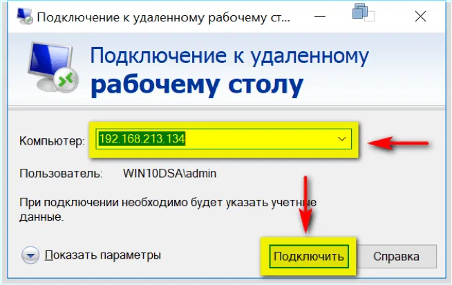 - В окне Подключение к удаленному столу ввести IP адрес или имя удаленной рабочей станции и нажать кнопку Подключить