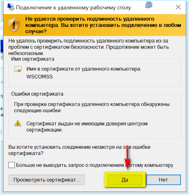 - В следующем окне нажать кнопку Да