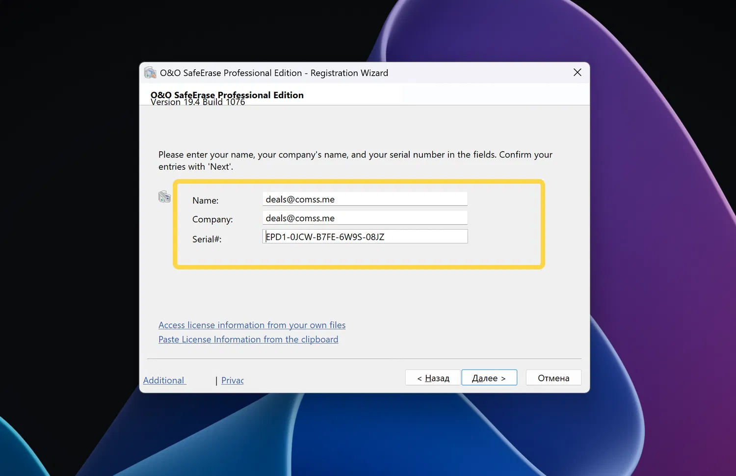 Для получения бесплатной лицензии O&O SafeErase 19 Professional выполните следующие действия:
