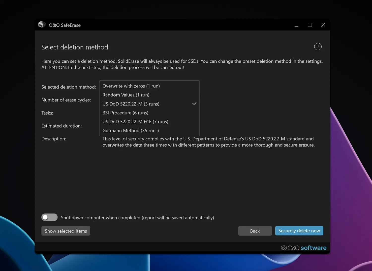 Новое в O&O SafeErase 19