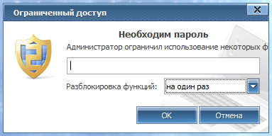 В более старых версиях Emsisoft Anti-Malware, в случае установленного пароля, появляется окно "Необходим пароль. Администратор ограничил использование некоторых функций."