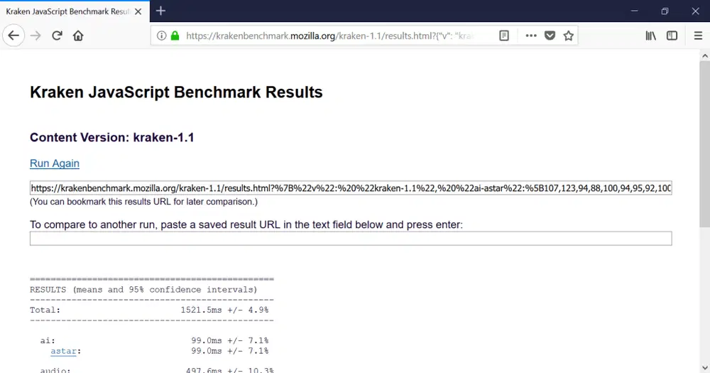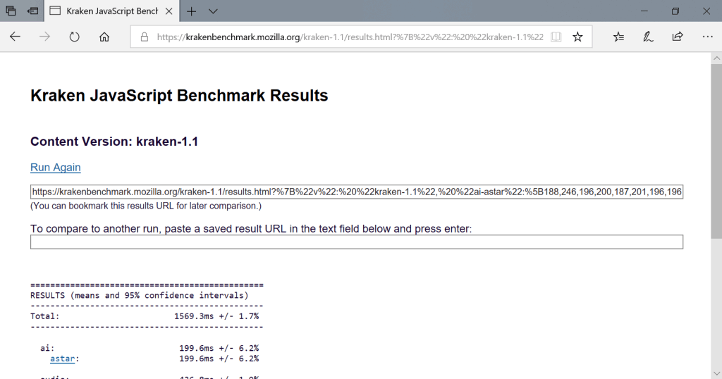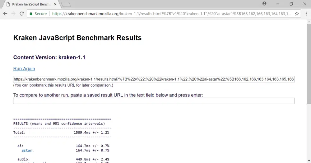 Kraken - JavaScript бенчмарк, разработанный Mozilla (результат: меньше - лучше)