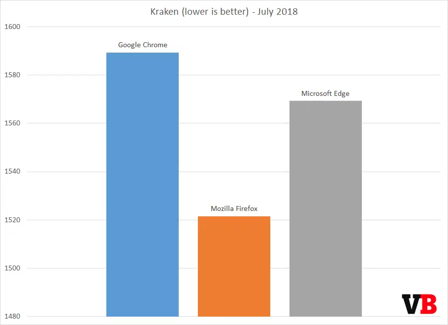 Kraken - это тест Mozilla, и Firefox победил здесь. Но на самом деле, все три браузера были довольно близки по результатам.