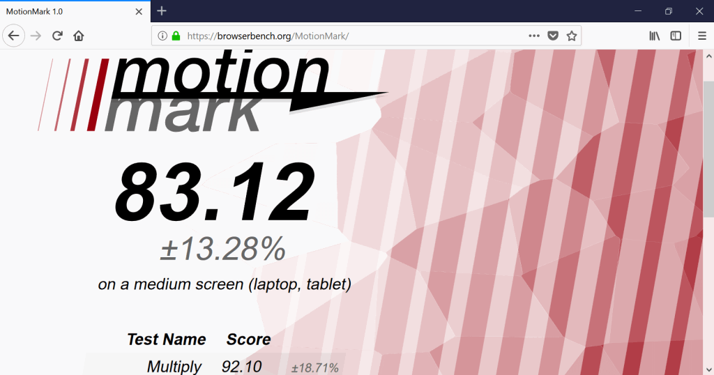 MotionMark - графический бенчмарк, разработанный командой WebKit (результат: больше - лучше)