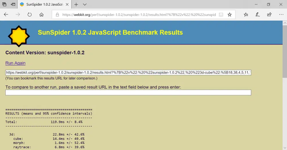 Этот бенчмарк занял больше всего времени для выполнения тестирования, и Edge здесь стал явным победителем.