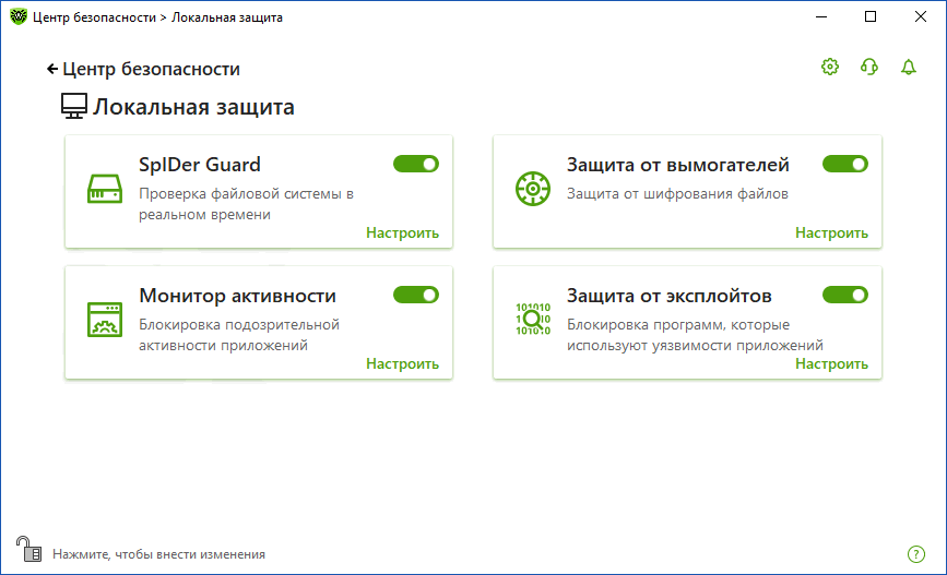 - Обновлен подход к управлению Превентивной защитой, которая теперь состоит из трех модулей: монитора активности, защиты от вымогателей и защиты от эксплойтов. Все модули обладают возможностью гибкой настройки.