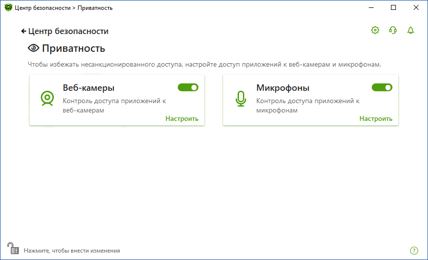 - Добавлены функции обеспечения приватности: теперь можно запретить или разрешить использование камер и микрофонов.