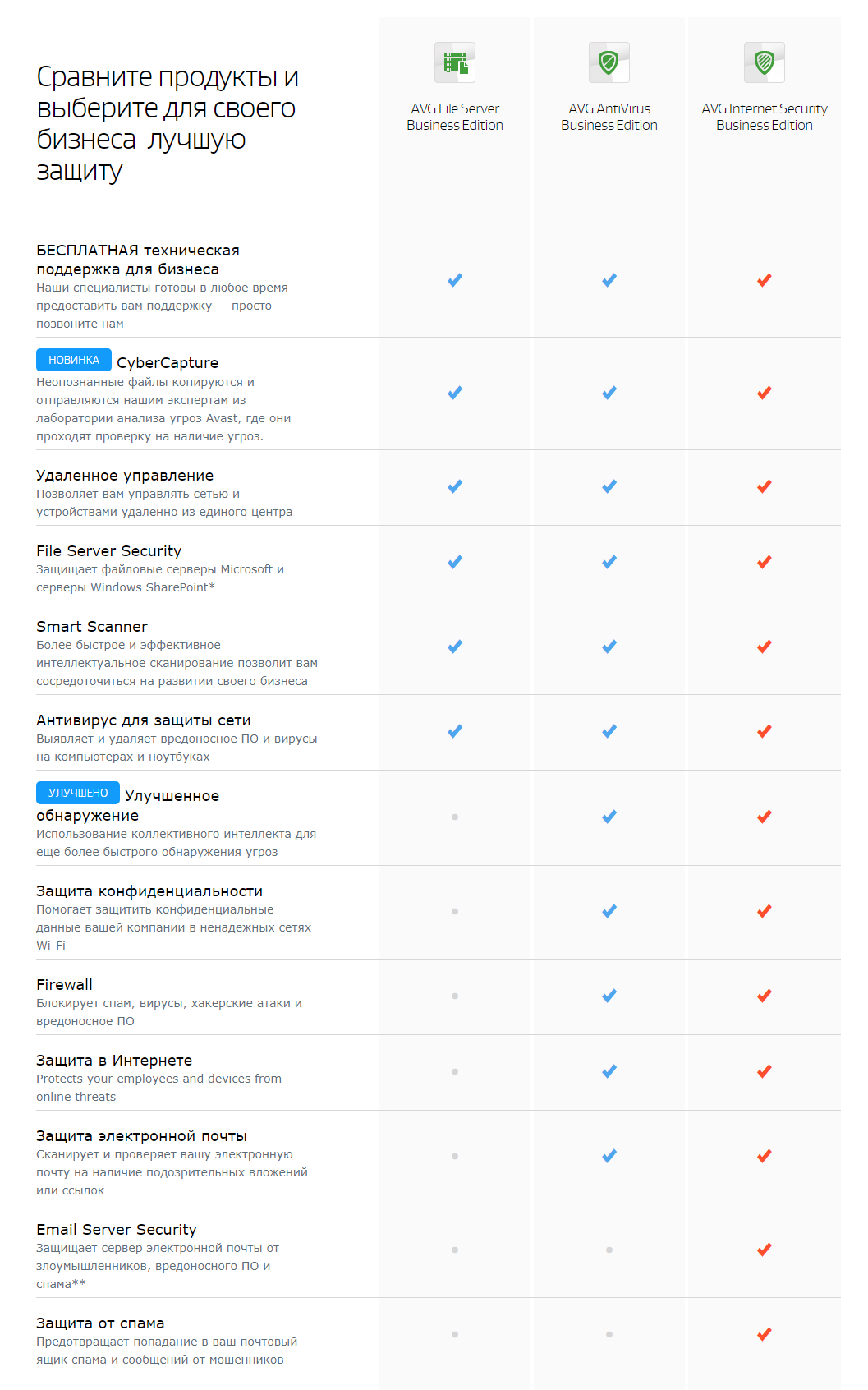 Компания AVG предлагает три решения для защиты бизнес клиентов: