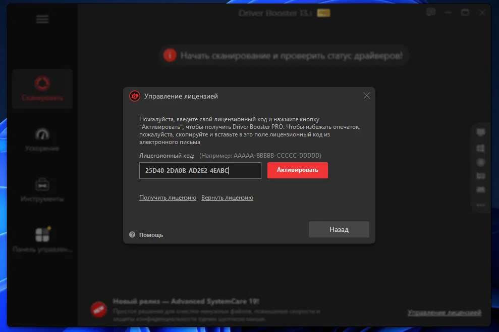 Для получения бесплатной лицензии IObit Driver Booster PRO необходимо выполнить следующие действия:
