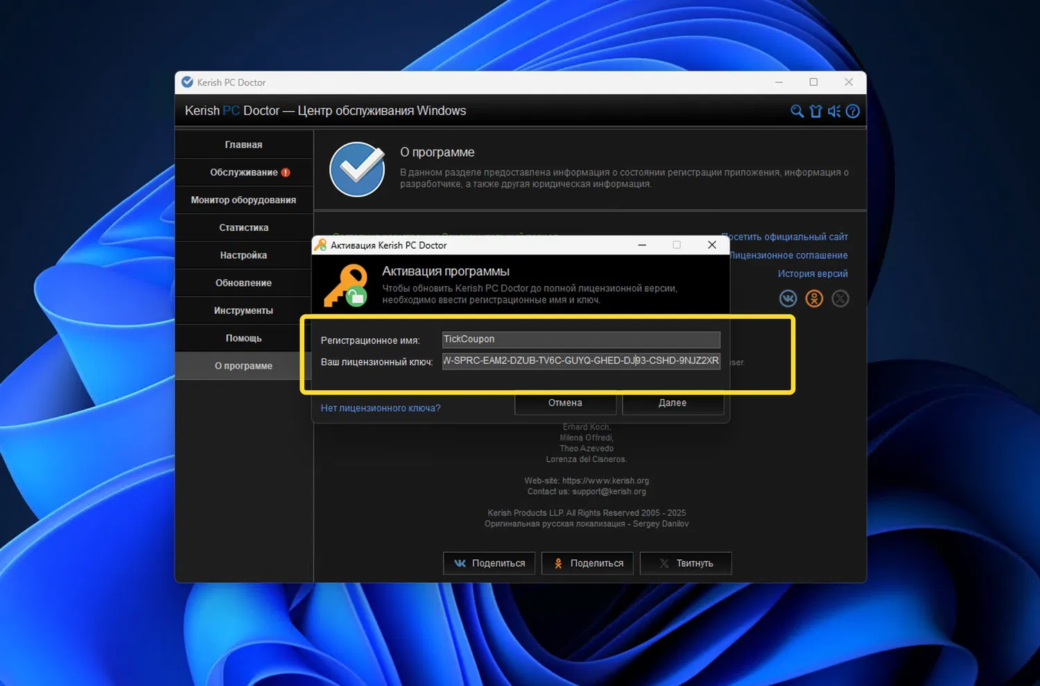 Для получения бесплатной лицензии Kerish Doctor на 1 год выполните следующие действия: