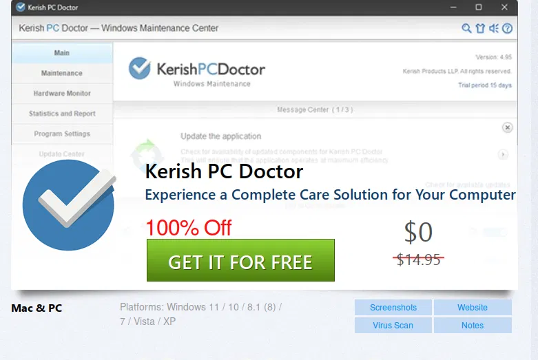 - Вы получаете бесплатную лицензию Kerish Doctor на 1 год для 1 ПК, только для домашнего использования.