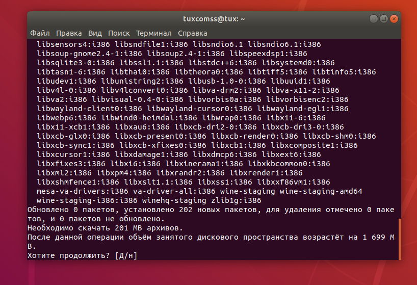 Переходим к непосредственной установке Wine (команды выполняем в терминале):