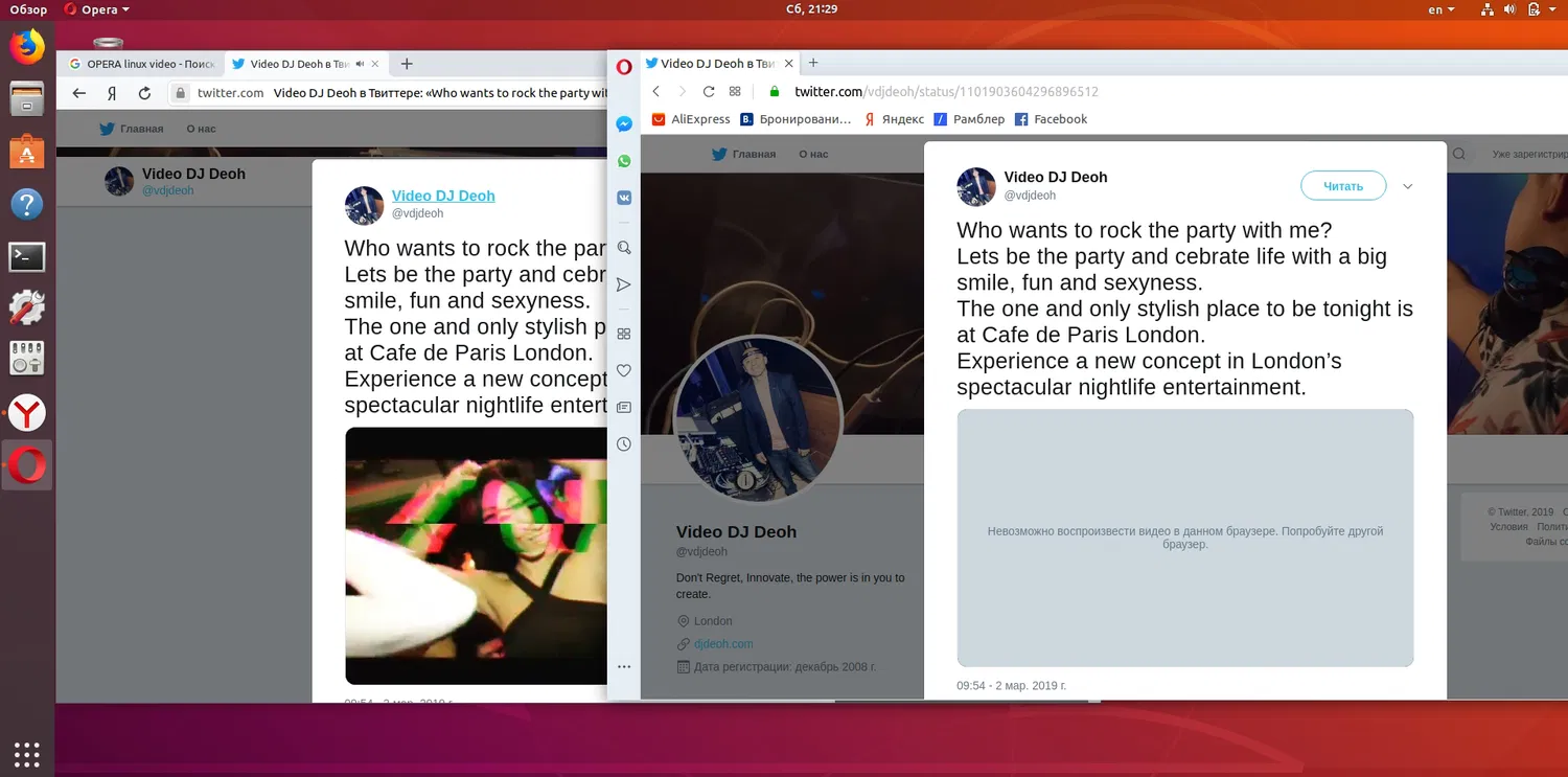 Исправляем ошибку воспроизведения видео браузером Opera в дистрибутивах Ubuntu и подобных
