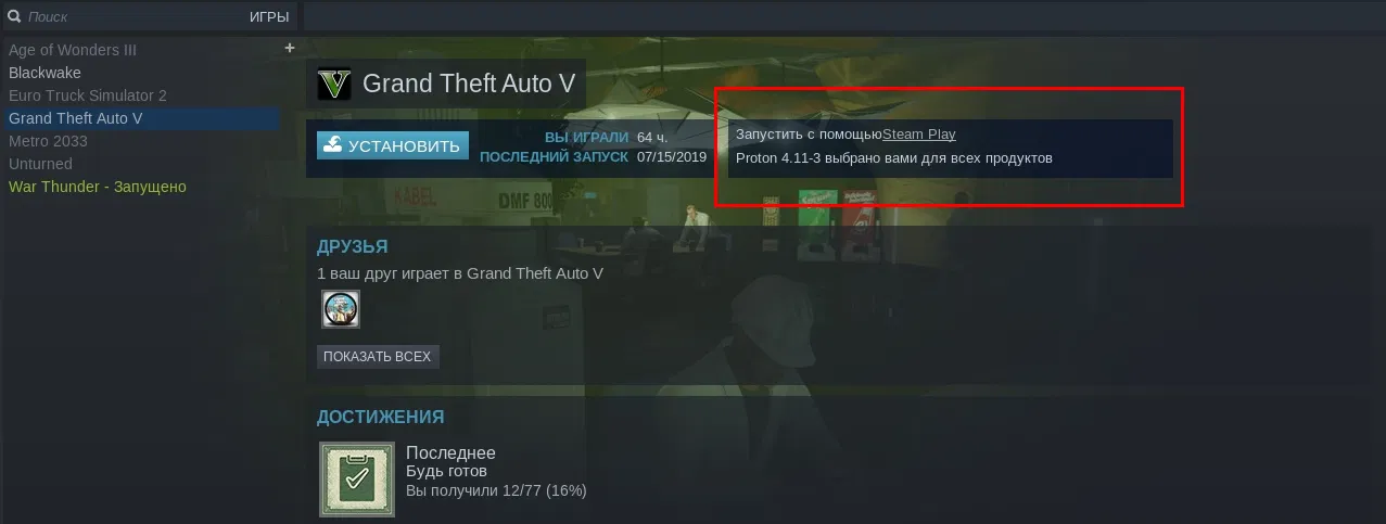 Дальнейшая установка игр ничем не отличается от установки в системе Windows. Steam Play автоматически произведет нужные настройки для установки игры.