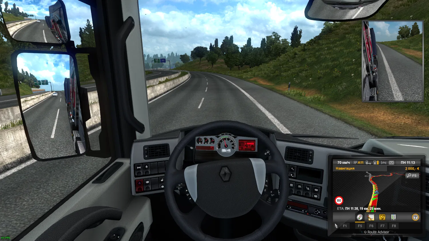 В симуляторе Euro Truck Simulator 2 производительность в Windows 10 отображалась от 85 до 120 fps.