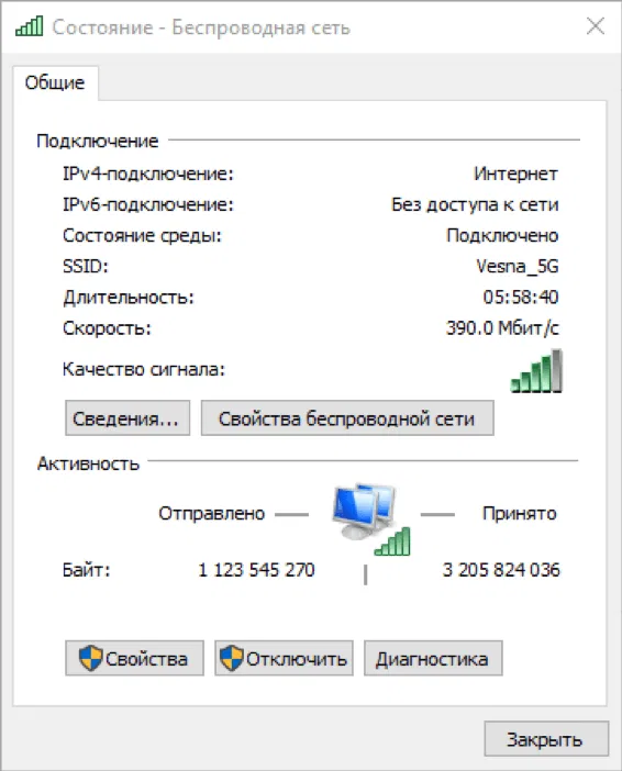 Windows показывает уровень сигнала WI-FI на ярлыке Параметры сети и Интернет на панели задач, а также в свойствах адаптера (Панель управления > Сеть и Интернет > Сетевые подключения).