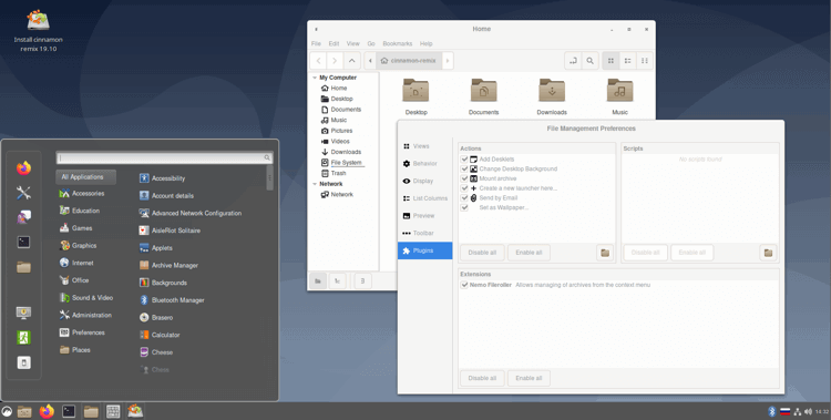 Ubuntu Cinnamon Remix 19.10 использует рабочее окружение Cinnamon 4.0.10 (в последней версии Linux Mint 19.2 установлен Cinnamon 4.2), ядро Linux 5.3.0.