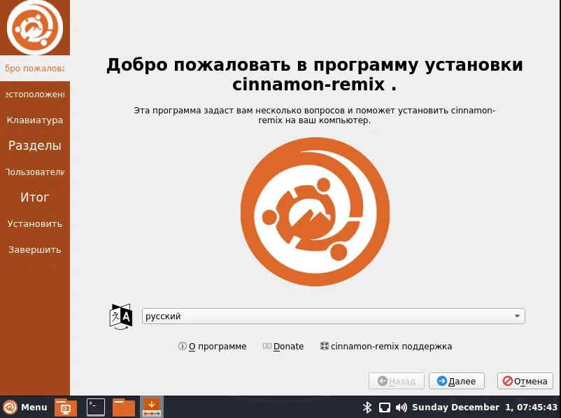Используется установщик Calamares (вместо Ubiquity из прошлой версии), который тоже поддерживает русский язык.