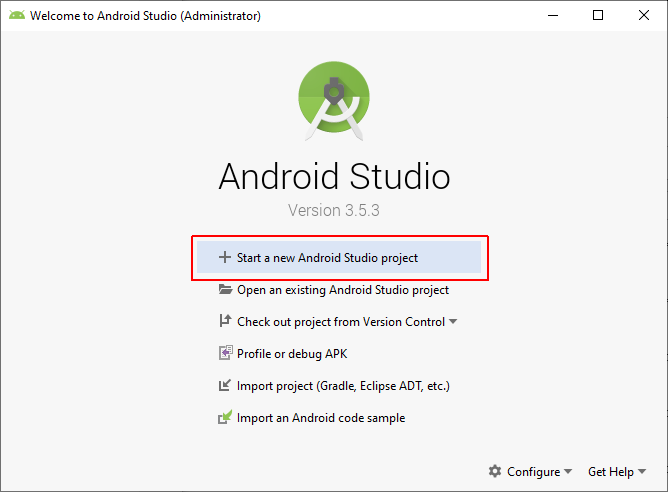 Запустится Android Studio. Откройте новый проект, выбрав пункт "Start a new Android Studio project".
