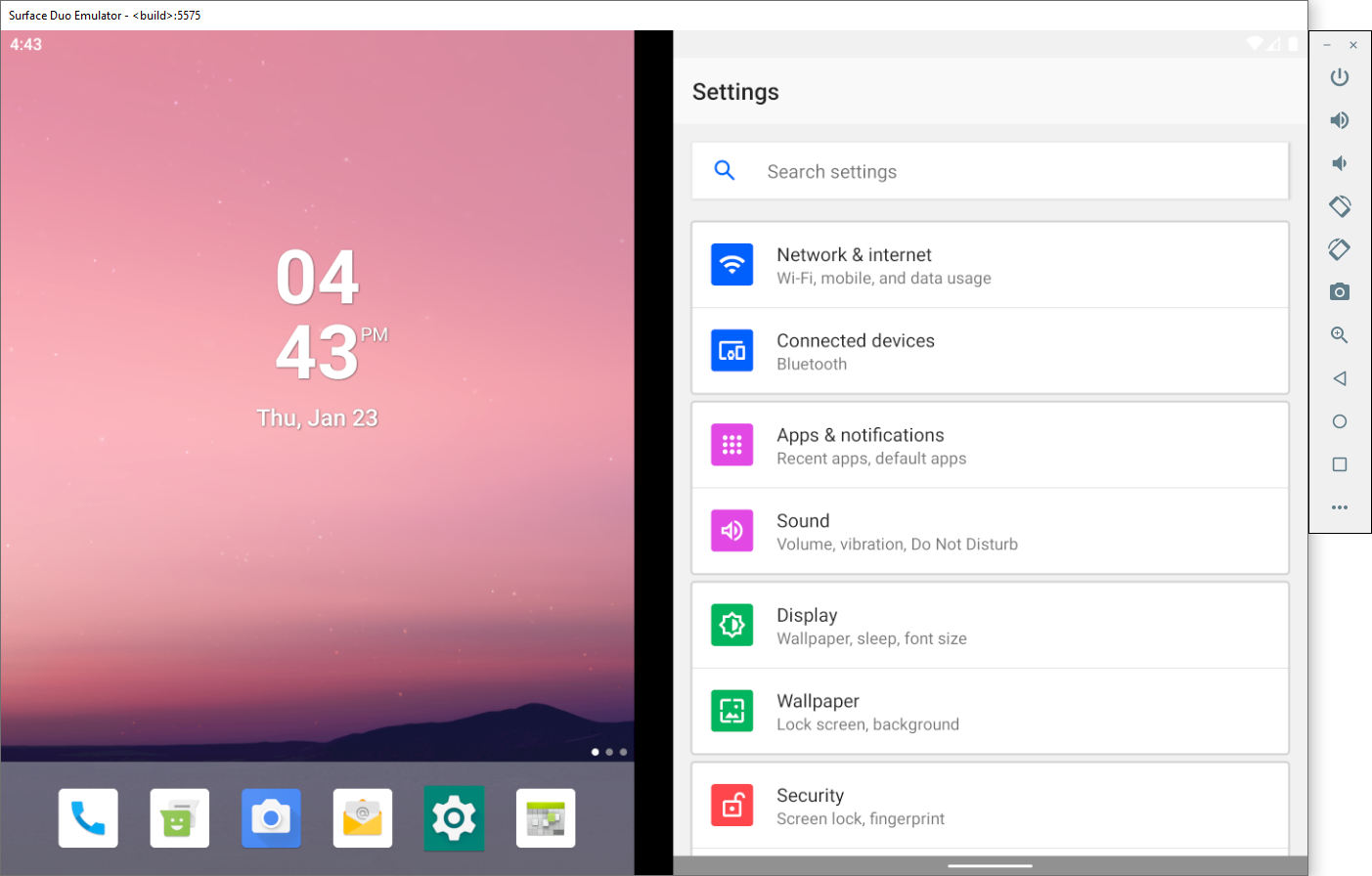 Эмулятор имеет мало функций, но вы можете запускать браузер Edge и некоторые встроенные приложения, например Почту и Погоду. Разработчики мобильных приложений могут тестировать свои приложения на совместимость с двухэкранным интерфейсом. Для удобства использования, эмулятор имеет много настроек, которые будут полезны для разработчиков мобильных приложений.