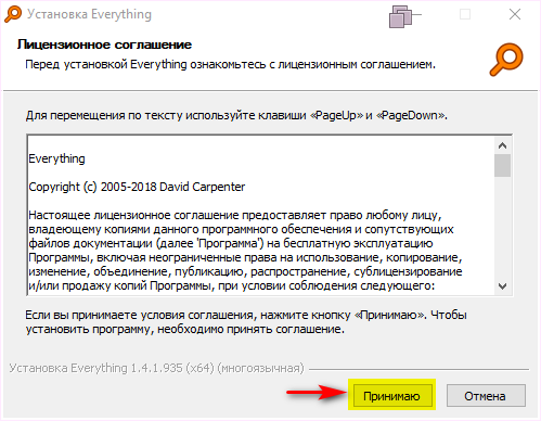 При первом запуске программы за секунды будет произведено индексирование имен файлов и папок, расположенных на всех подключенных дисках. При повторном запуске программы будет выполнено обновление индекса.