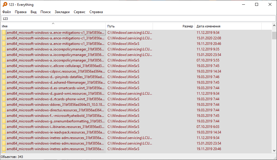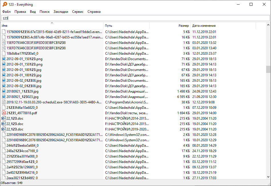 Например, необходимо найти файл или папку, в названии которых есть 123.