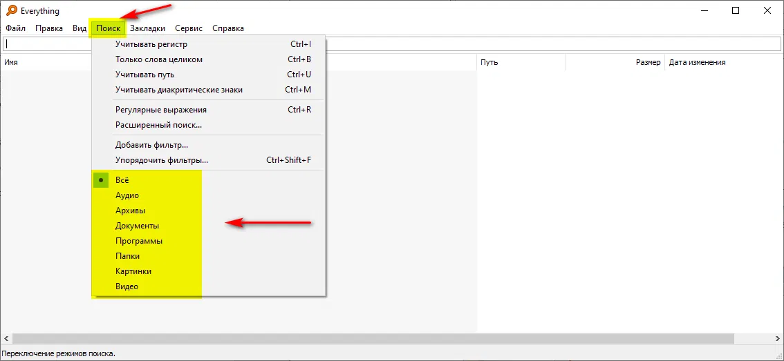Everything – бесплатная программа для мгновенного поиска файлов и папок по именам. Так как индексируются только имена файлов и папок (содержимое файлов не индексируется), поэтому поиск осуществляется мгновенно.
