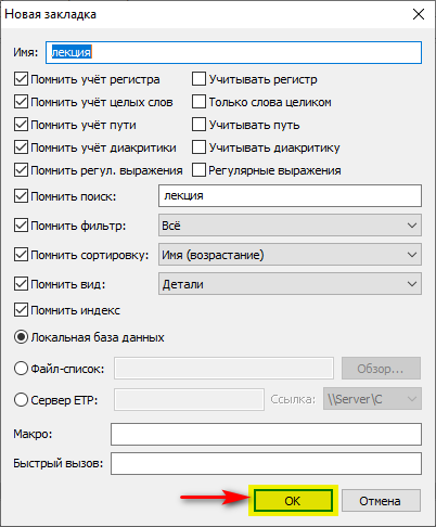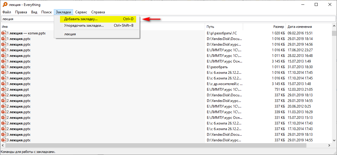 Рис.17 Создание, редактирование или удаление закладок в программе Everything