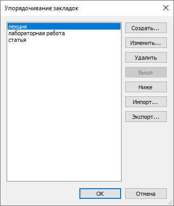 Удалить, создать или изменить ранее созданные закладки можно в главном меню Закладки > Упорядочить закладки….