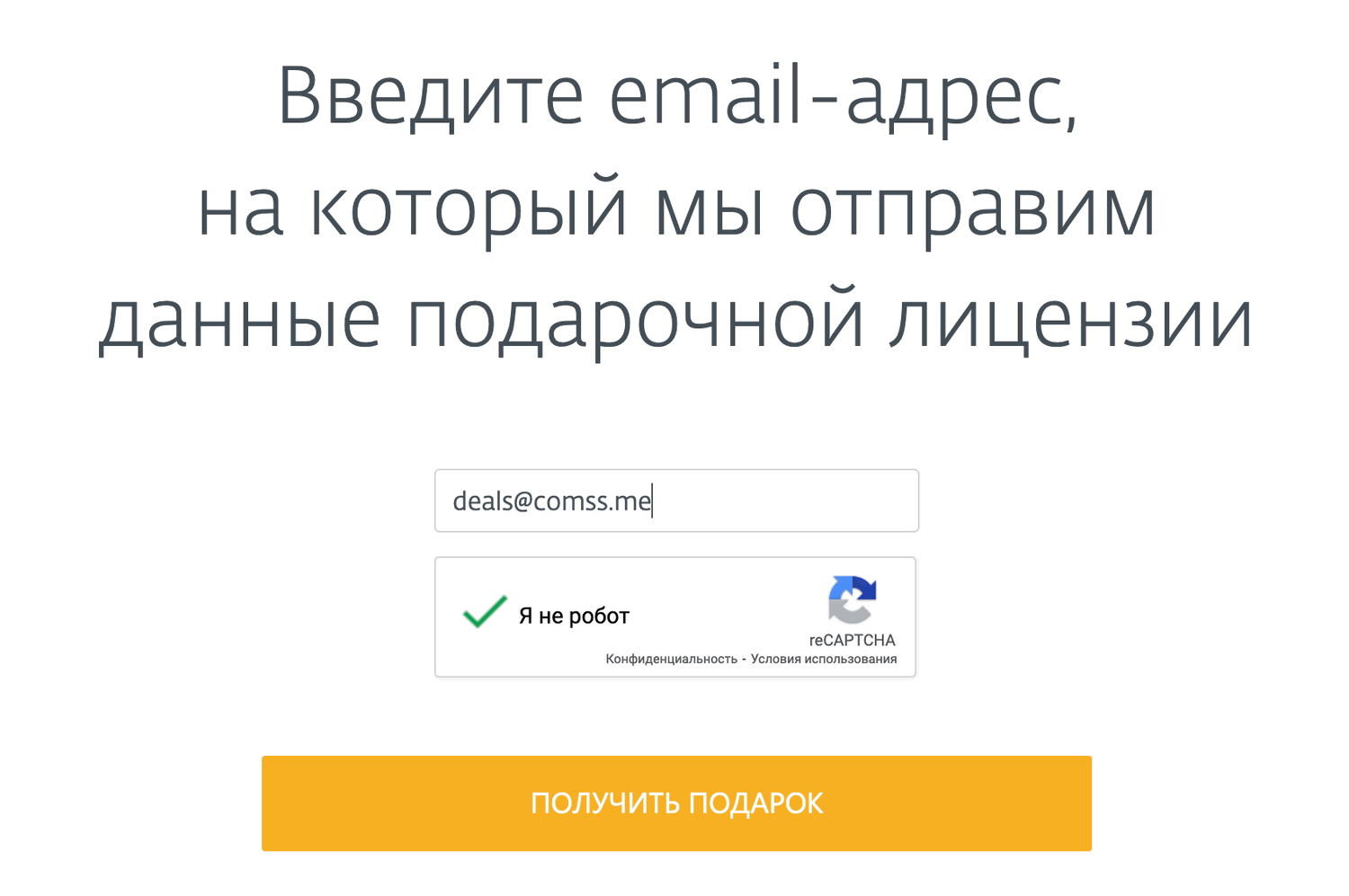 2. Нажмите Получить подарок и заполните форму, указав действующий адрес электронной почты.